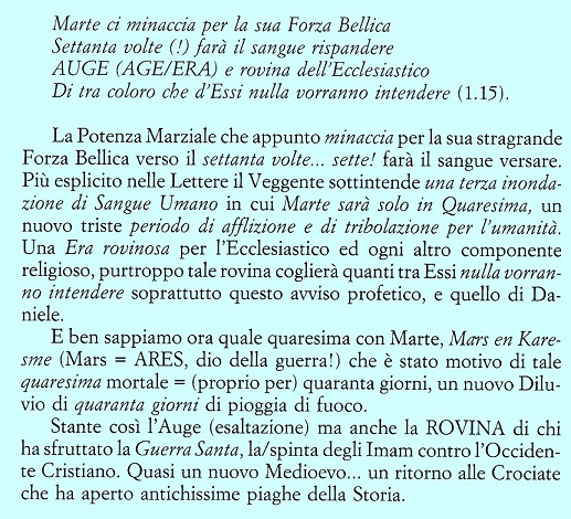 Chi agisce dietro le quinte del teatro o dello scacchiere mondiale ed opera con luciferina, satanica, diabolicità, è il vero maligno 惡魔 demonio – che tira la pietra contro l’albero e nasconde la sua mano. Eccoci così all’Associazione di maligno, satanico, infernale assume un ruolo inevitabile in questa comparazione di nemico del genere umano. E su tale tema non mancano quartine. Si sono spese molte parole sul nemico chiamato ora Demonio Deuce o Devil o Osatane Satana ect. Qui aggiungiamo che “ O “ fonetico è l’ideogramma letto per il Maligno che si scrive con il glifo惡 ovvero una CROCE che cammina, pellegrina. Misteriosa ANTITESI che ha la Croce in occidente segno sacro contro il Maligno. Quanto ci porta ad arguire che nell’anno diabolico- satanico ,cifra e significazione o archetipo rechi davvero la minaccia palese di tale gesto- atto stramalefico? Il Lupo contro l’Agnello. L’Agnus che è simbolo cristiano ben noto che simboleggia l’intera cristianità, la stessa Croce innanzi al pericolo, dovuta alla Sete Sanguinaria di forze potenti che esercitano tale Ingiuria e Ingiustizia. Tempi durissimi per la Cristianità si deducono da Lettere e quartine del Nostro e del Fanti. Lo abbiamo già messo bene in rilievo quanto al Settanta volte sette (777) il sangue sarà sparso (vedi la 1- 15 !)per farsa e parsa bellica ( pharsa in sanscrito Violenza) – Ma abbiamo alle nostre spalle decenni di ottusi che nulla vogliono intendere, come l’attentato a Roma del 1981. Quello debitamente inconfutabilmente era stato preannunciato da anni ed anni e giunto poi ad essere confuso con la Profezia di Fatima di Suor Lucia ad opera di Carlo Tarciso Bertone e il Cardinale Ratzinger…poi Benedetto XVI° su cui inconfutabilmente abbiamo anticipato il suo al Grande seggio e SIEZE (16) il Forfait e come ERRE (vedi in greco) di andare dal XVI…0 Dix Sestus = Dissesto perché ben altro secondo il volgo ha significazione che nessun giornalista ha mai avuto il coraggio di pubblicare! . Ma tutto a tempo debito. Obbligati dai sensi e significazioni che l’equipollente segno dello SCORPIONE comporta. Signore dell’Ottava Casa, quella della Morte. Della Fine e termine di quanti si credono agnelli o peggio i Lupi travestiti da Agnelli.