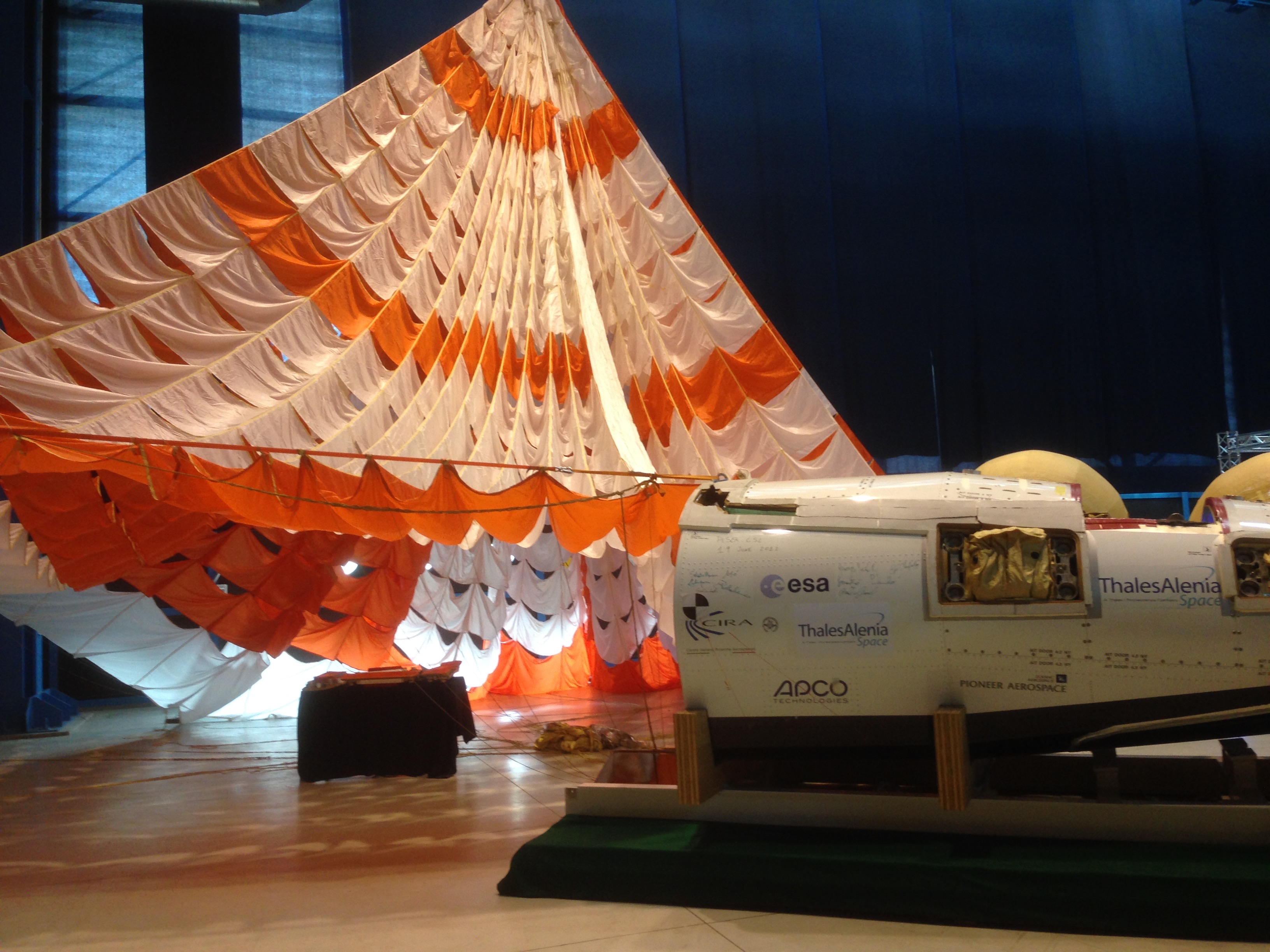 (La Navicella dell’Alenia per scendere su Marte con il grande paracadute)