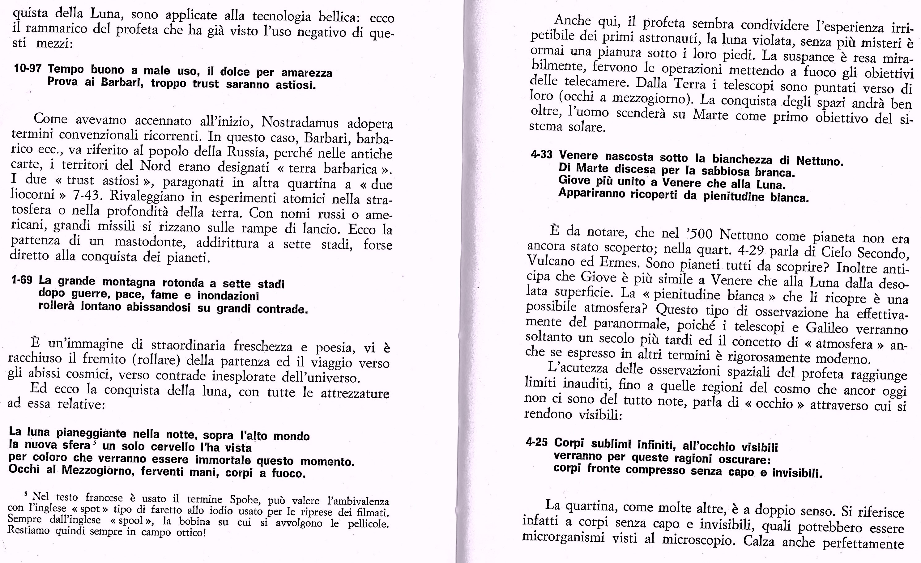 Di fatto le quartine immaginifiche lette negli anni Settanta bene hanno ispirato e chi mai potrebbe contestare simile orizzonte che collima con i nostri Tempi ? Conferme che acquistano un singolare sapore, nozioni che sono input= il cibo per la mente dei tanti lettori di fantascienza, che oggi si dimostra camminare sullo stesso binario delle rinascimentali profezie di Nostradamus …..senza tempo l’immaginazione oltre trapassa il tempo.