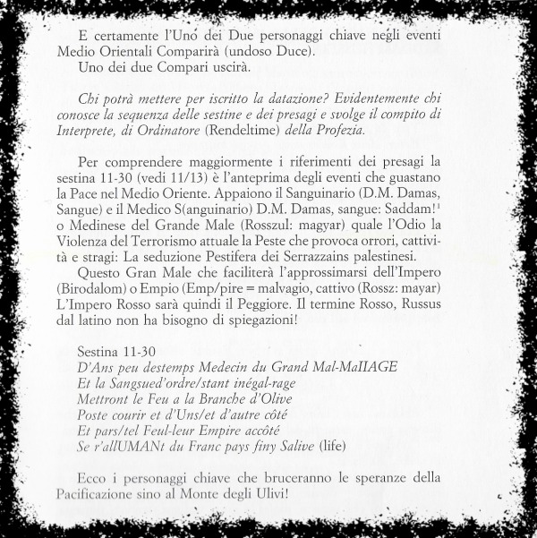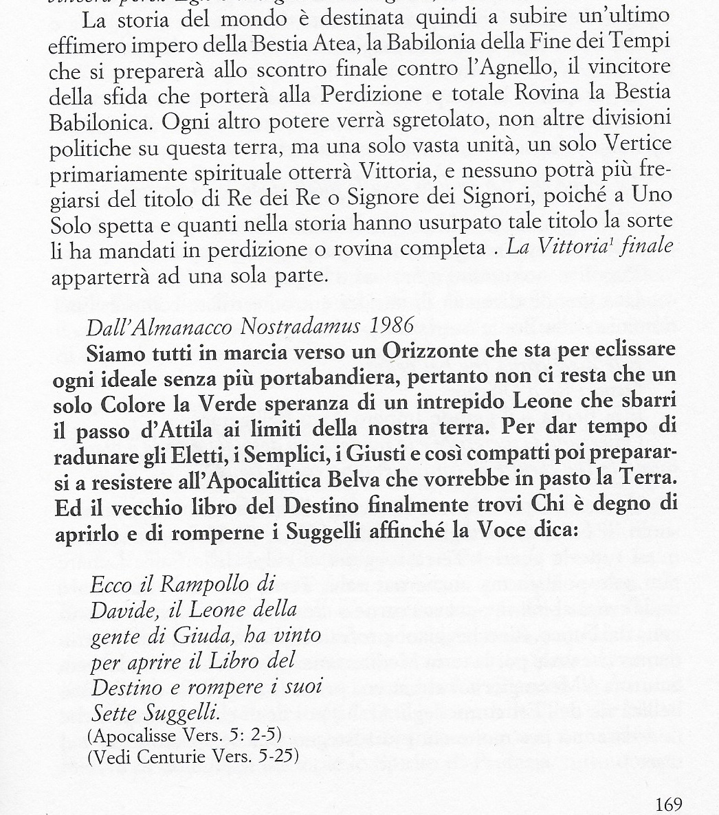 Incluso quello più arduo da dissuggellare, spezzare il Sigillo del libro più caleidoscopico che traccia gli scenari del futuro umano e delle sue catastrofi o cambiamenti radicali e rivoluzionari. Ma i cui attori sono innominati ma sino a qual punto ?