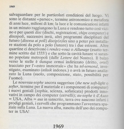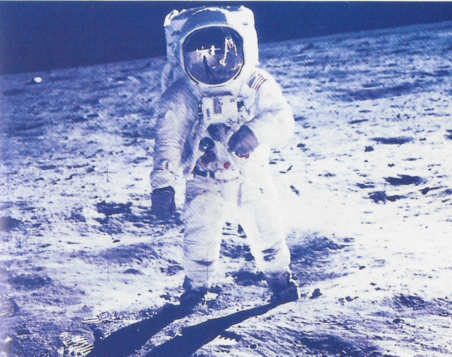Ma restiamo sul semplice poiché altre quartine tracciano l’epopea dela tecnologia spaziale, sopratutto quanto ha lasciato scritto nel 1526 così Sigismondo Fanti il cui ruolo storico nel Rinascimento ferrarese e veneziano è un tena che ci sta tanto a cuore (by heart )qui come abbiamo da anni messo in evidenza.Quanto ancora sempre con la Luna richiede che il Cavaliere eroica giunga lassù per ricuperare la MEMORIA, sopratutto da Ferrara la città dalla Fede rara come ama dire il Fanti….sino a discoprire la grande macchia rossa su Giove ! Il Grande tema che ha la Luna in primis diventare davvero la dea che ispira poeti e fantastici viaggi precursori che anticipano lo scibile umano. L’ARTE (in greco) la TEKNE suprema che fa fare all’uomo questi grandi passi o lanci tra i cieli.Dai primi sogni di Icaro di volare sino a Leonardo ecco come il profeta sembra condividere l’esperienza irripetibile dei primi astronauti, la luna violata, senza più misteri e così la pianura sotto i loro piedi. Le orme famose e la polvere sollevata , la suspense resa mirabilmente in bianco e nero mentre automaticamente fervono le operazioni che mettono a fuoco gli obiettivi delle telecamere così piazziate. Il Fervore che ha tutti gli occhi del Mondo assistere all’evento immortale.Pellicole allora macinate a diversità del digitale ultimo.
