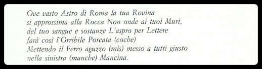 Ancor più sfolgorante e questa la sintesi che ne fa invece il Sigismondo Fanti :(XCI -VI)