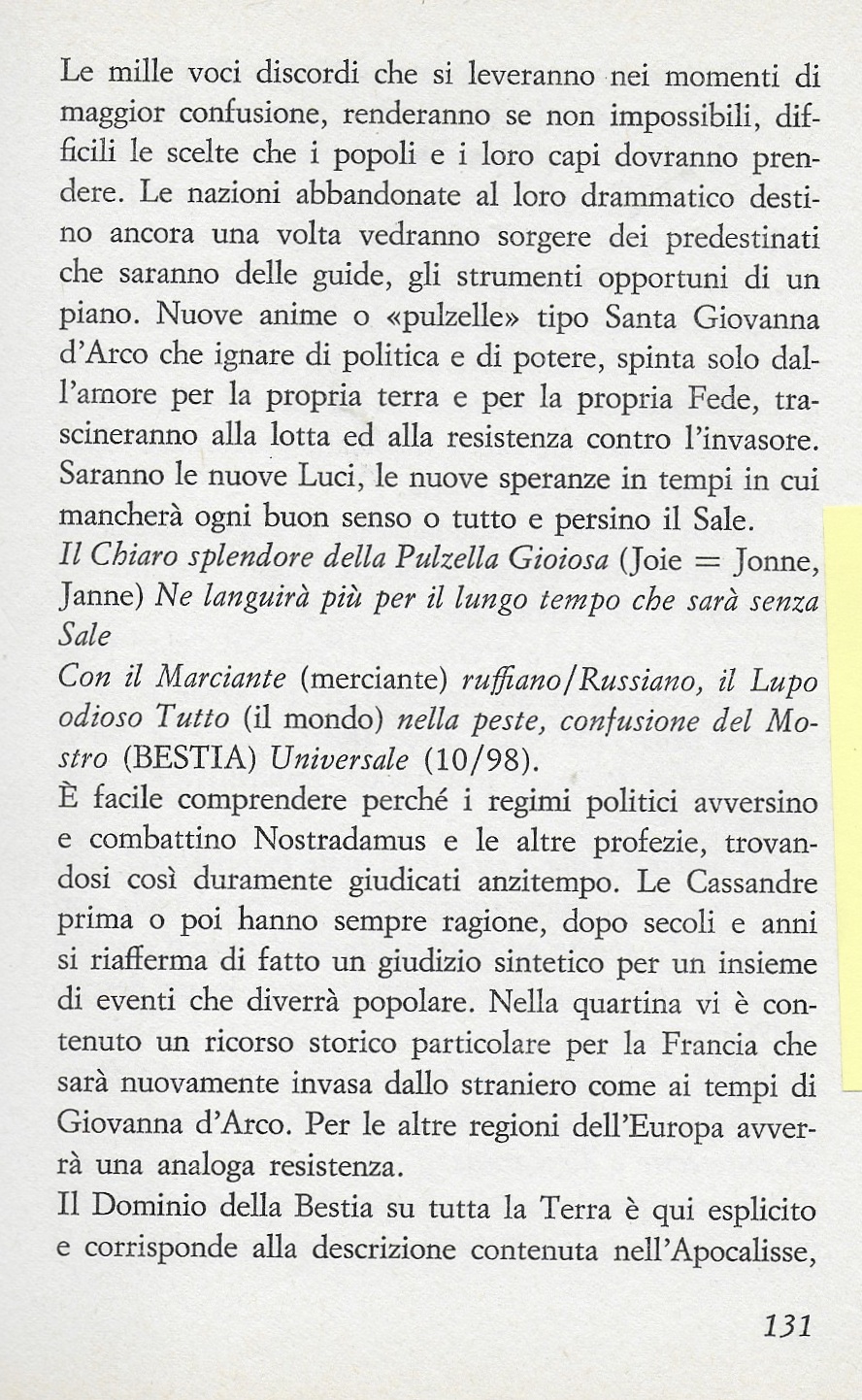Dal testo di “ Nostradamus Ultimi Presagi “ ed. nel 1980-Piemonte in Bancarella a pag.131…allARMAnte cronaca.