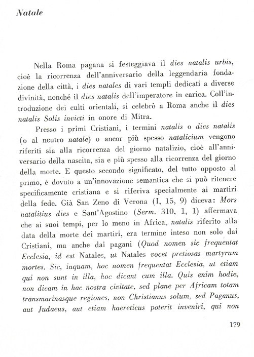 Dall’illustre Tagliavini(edizione Morcellliana 1963)Stotia di Parole pagane e cristiane nei tempi.Natale: Tra Liturgia e Terribile Storia