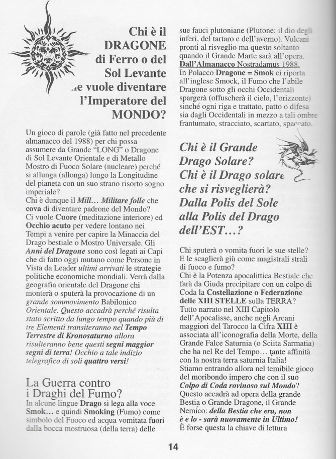 Dalle pagina dell’ALMANACCO di NOSTRADAMUS “2000 !